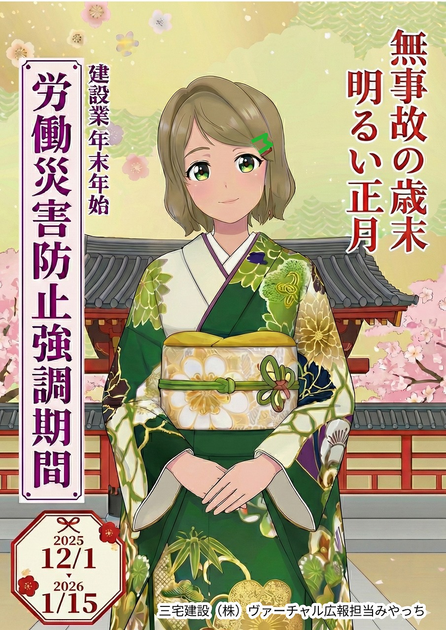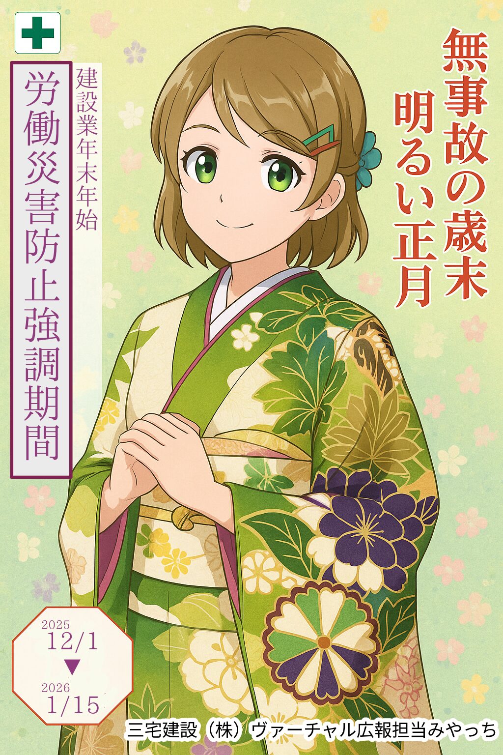 年末年始は長期の休業前の慌ただしい中での気持ちの焦りや、休業後に気持ちの切換えが追い付かない中で引き起こされる不安全行動など、労働災害防止に特別の配慮が必要である。当協会は、会員各位とともに年末年始の労働災害を防止することを目的に、本年度も12月1日から1月15日までの間を「建設業年末年始労働災害防止強調期間」として、「無事故の歳末 明るい正月」のスローガンの下に展開する。経営トップ、店社及び建設現場の管理者等の関係者は緊密な連携を図り、安全衛生水準の一層の向上を目指し、安全衛生活動の強化を図るものとする。